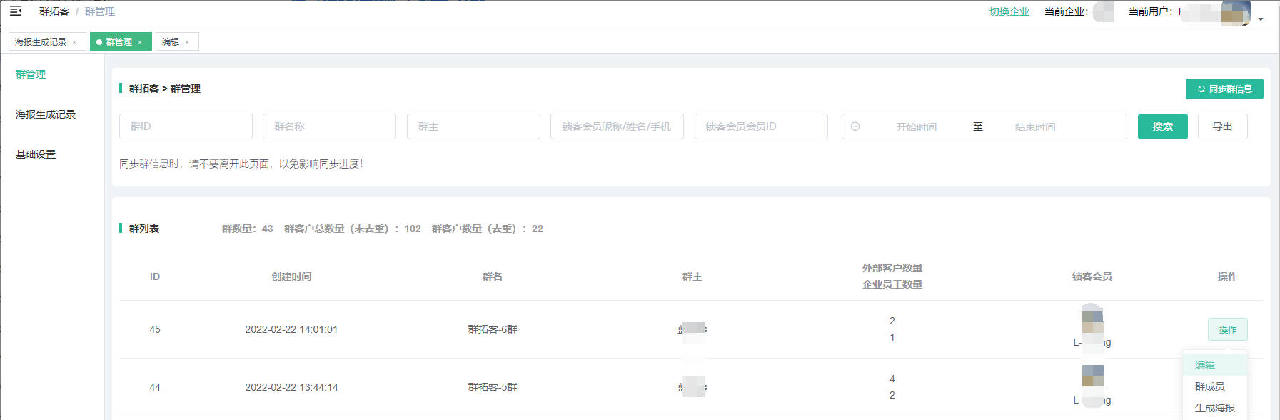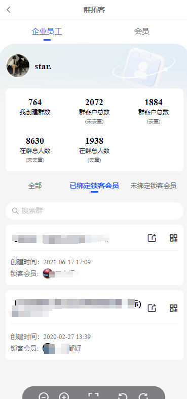 1、会员中心—群拓客—企业员工