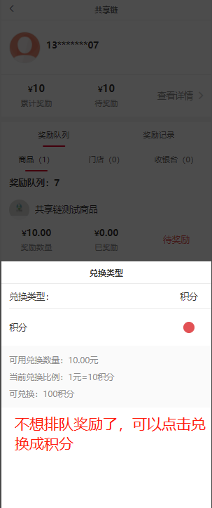 如不想参与排队等奖励了,可点击兑换功能,兑换成积分/爱心值。